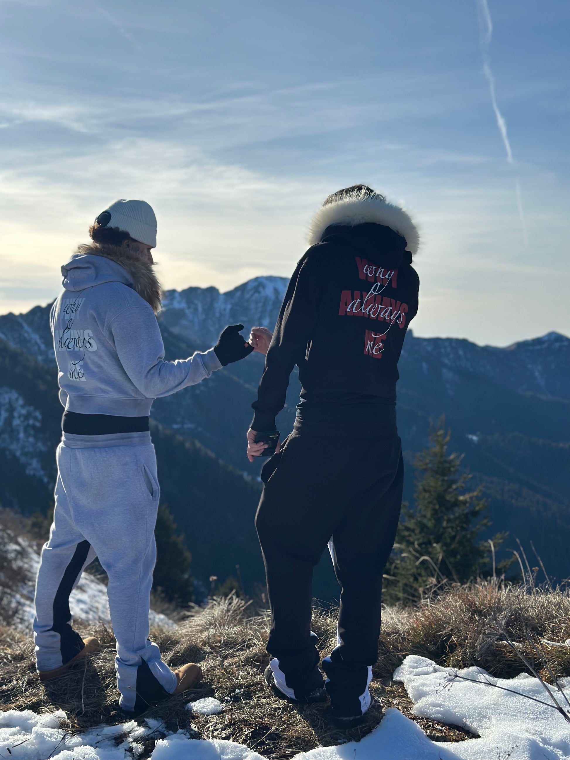 La fur hoodie è realizzata in uno stile slime e crop, risaltando il pelo sul cappuccio e le varie scritte ricamate.
